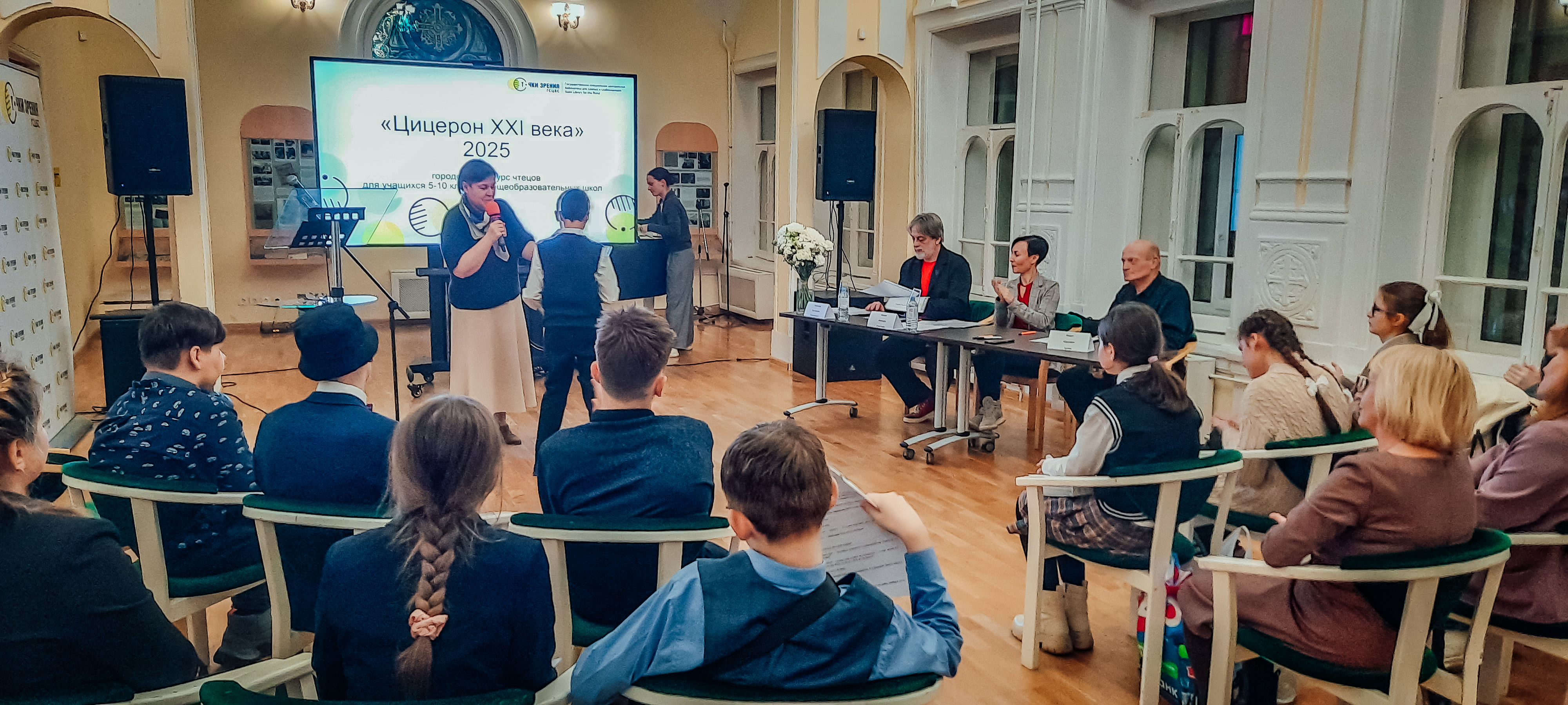 26 ноября 2025 года в библиотеке состоялся финальный тур конкурса «Цицерон XXI века». Ученики 5-10 классов городских школ, в том числе читающие по Брайлю, крупный шрифт и обычный текст, продемонстрировали искусство публичного выступления. В торжественной обстановке они представили выбранные ими самими прозаические произведения.