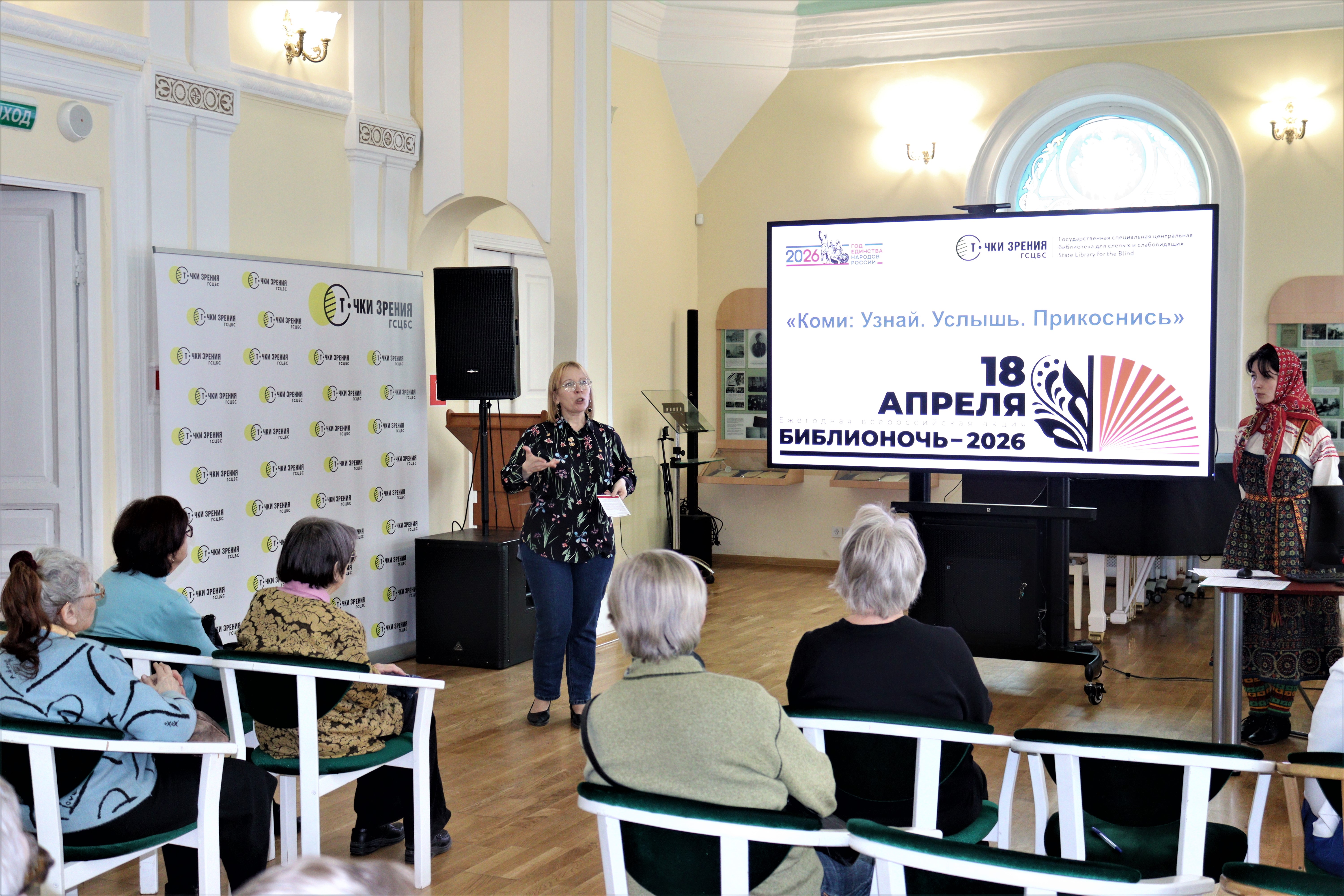 18 апреля 2026 года в Санкт-Петербургской государственной библиотеке для слепых и слабовидящих прошла ежегодная Всероссийская просветительская акция «Библионочь – 2026». В этом году главной темой вечера, созвучной общей идее единства народов России, стала уникальная и самобытная культура народов коми.