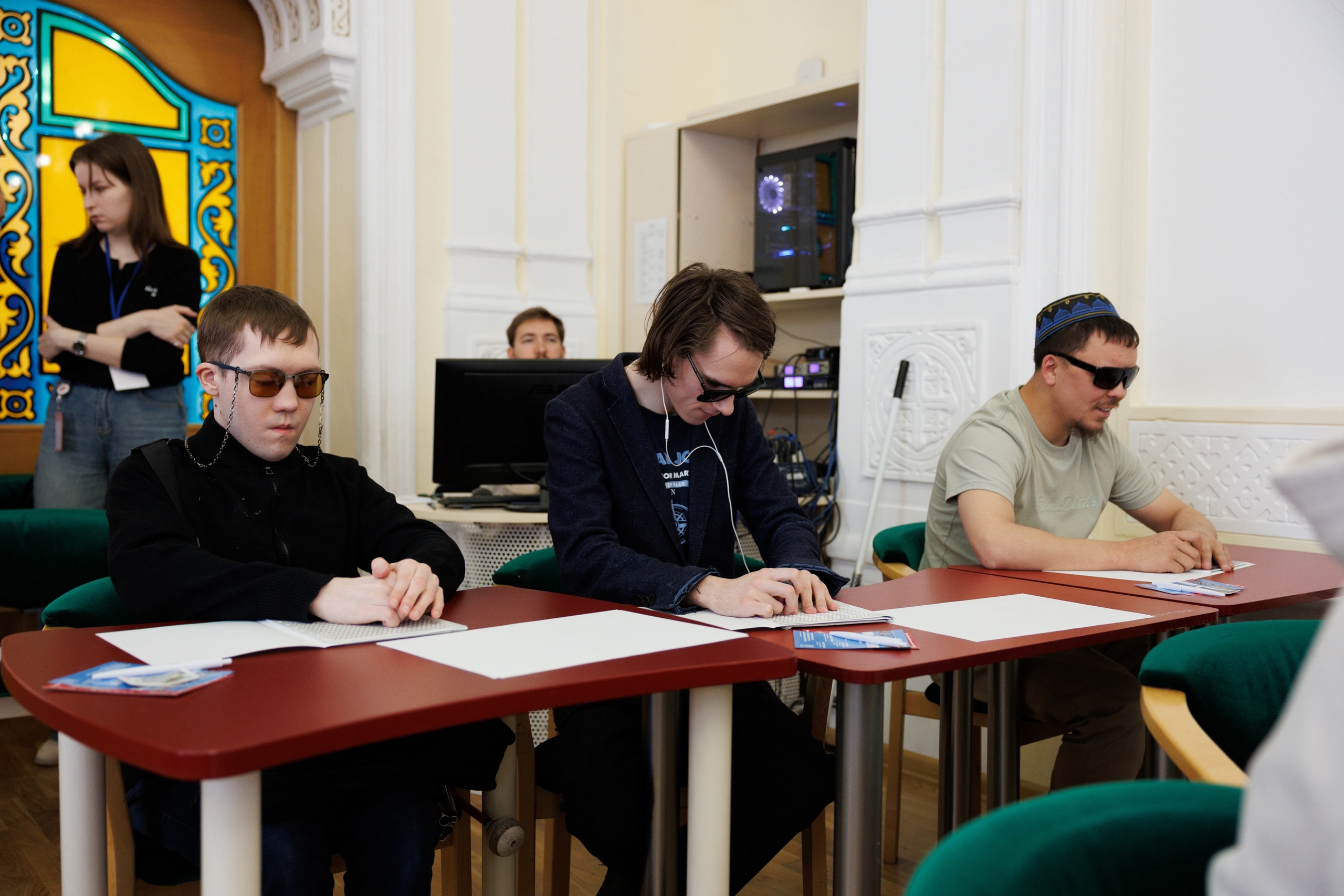 В этом году акция «Тотальный диктант» вновь собрала сотни участников в Петербурге. Одной из самых необычных площадок стала наша библиотека «Точки зрения», где 18 апреля люди с нарушениями зрения писали текст шрифтом Брайля одновременно со зрячими. Это единственная подобная инклюзивная площадка акции в городе – библиотека адаптировала событие так, чтобы все работали в одной аудитории.